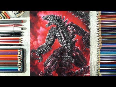 Colored pencil drawing: Mechagodzilla from Movie Godzilla Vs. Kong - Prismacolor /Colleen Colored Pencils /Renaissance - Canson fine face Paper - EE pencil ...